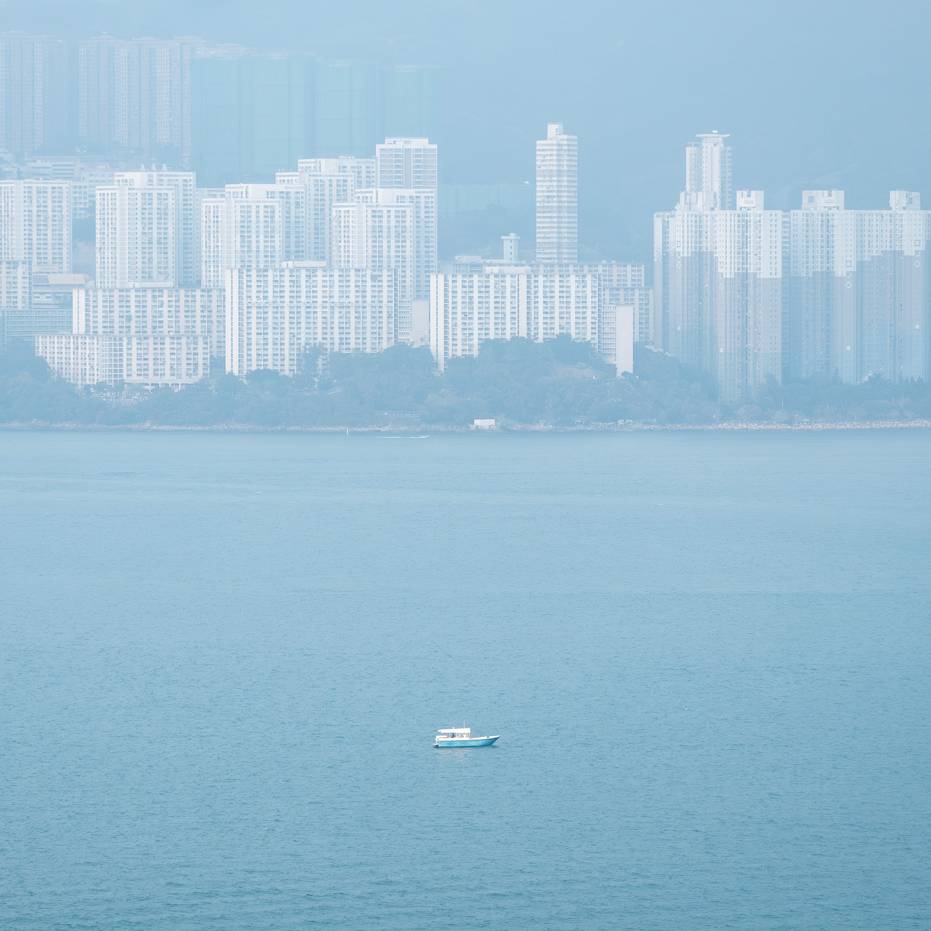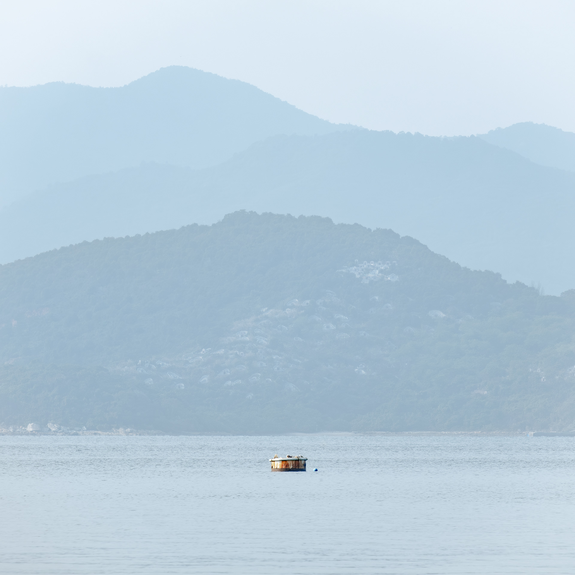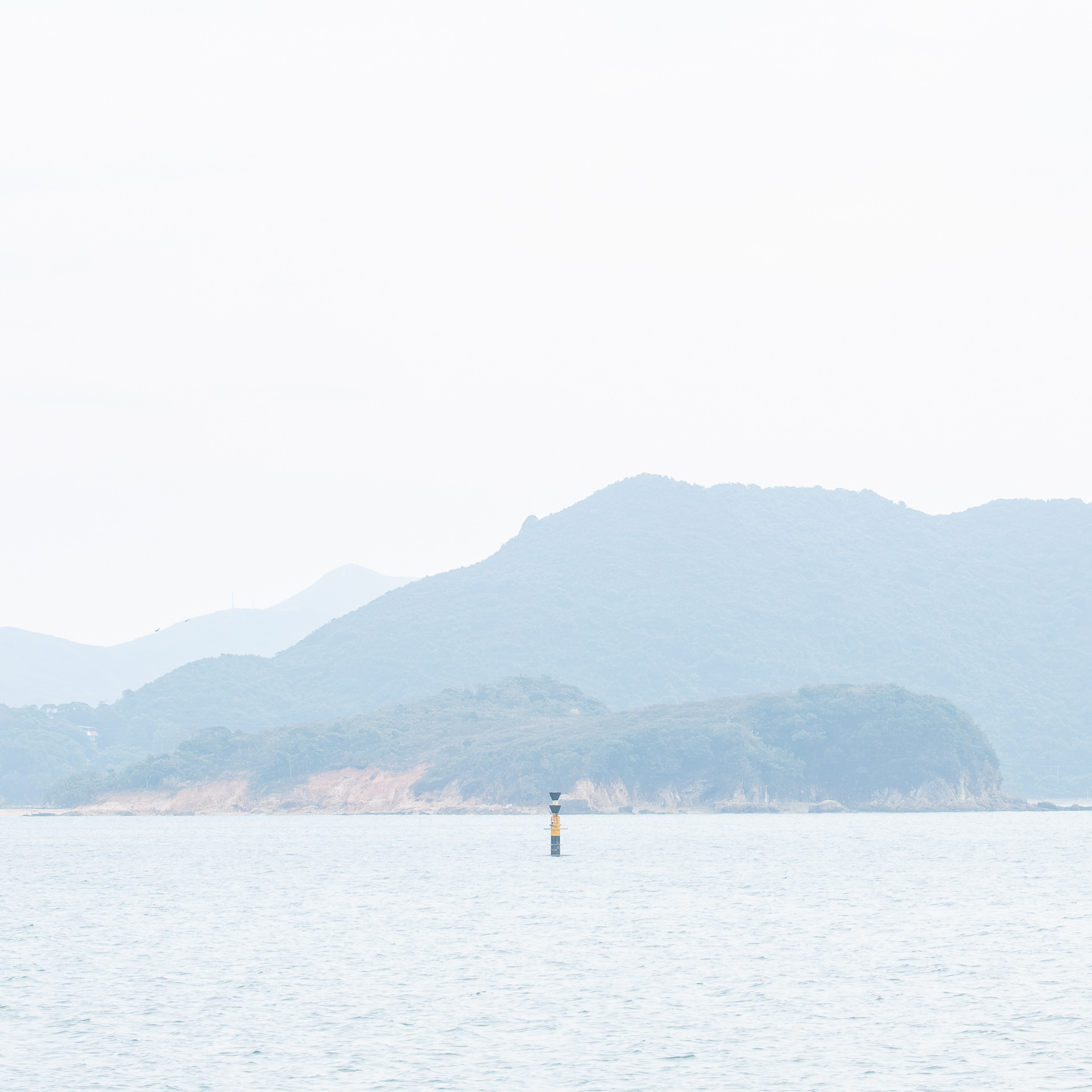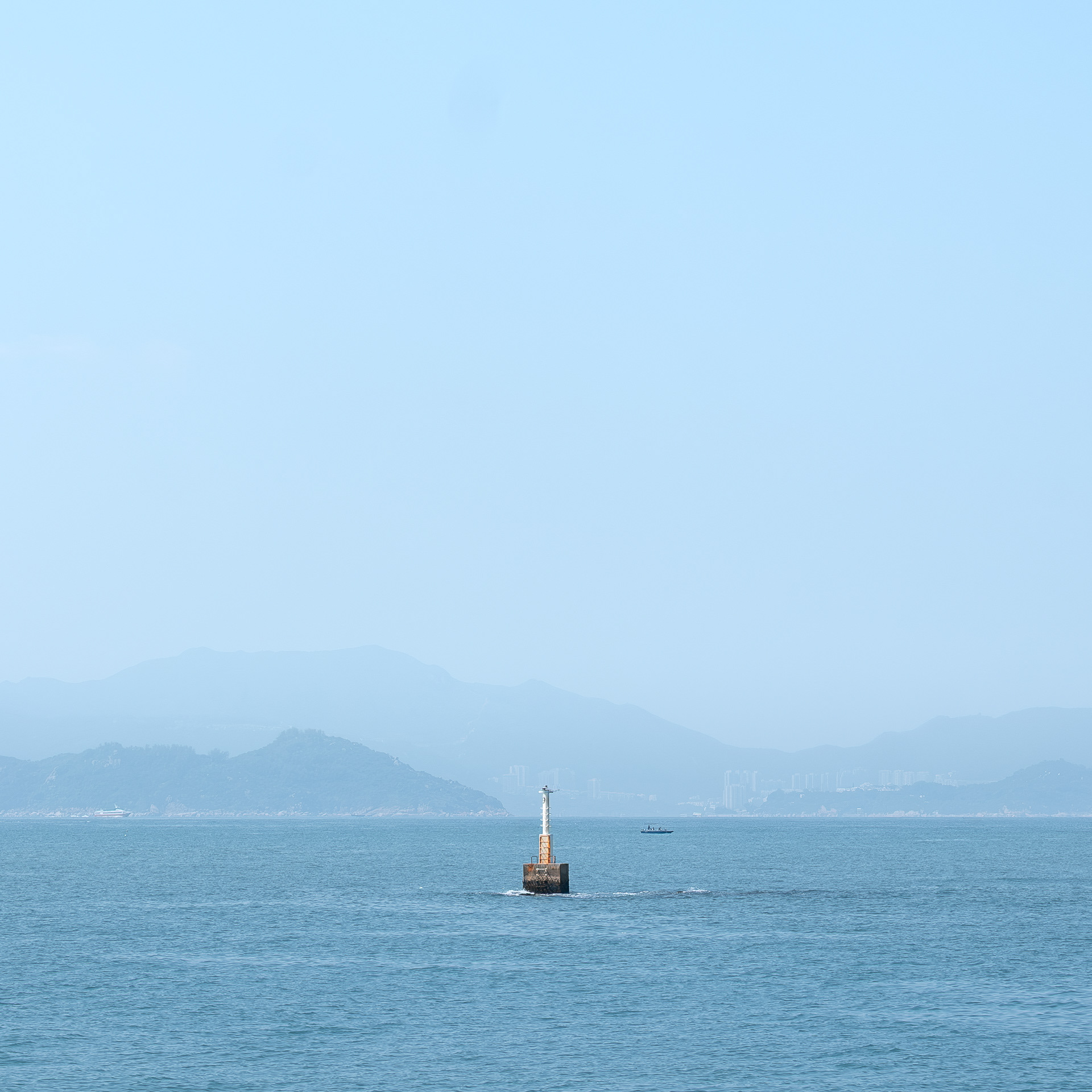 The photographs do not simply record Hong Kong's seascape; rather, they explore the act of observation through the lens. The sea level is a simplified plane. When the eye focuses on the object, it becomes an anchor point within the plane. When the anchor point is fully focused, the sense of time begins to slow to a standstill.