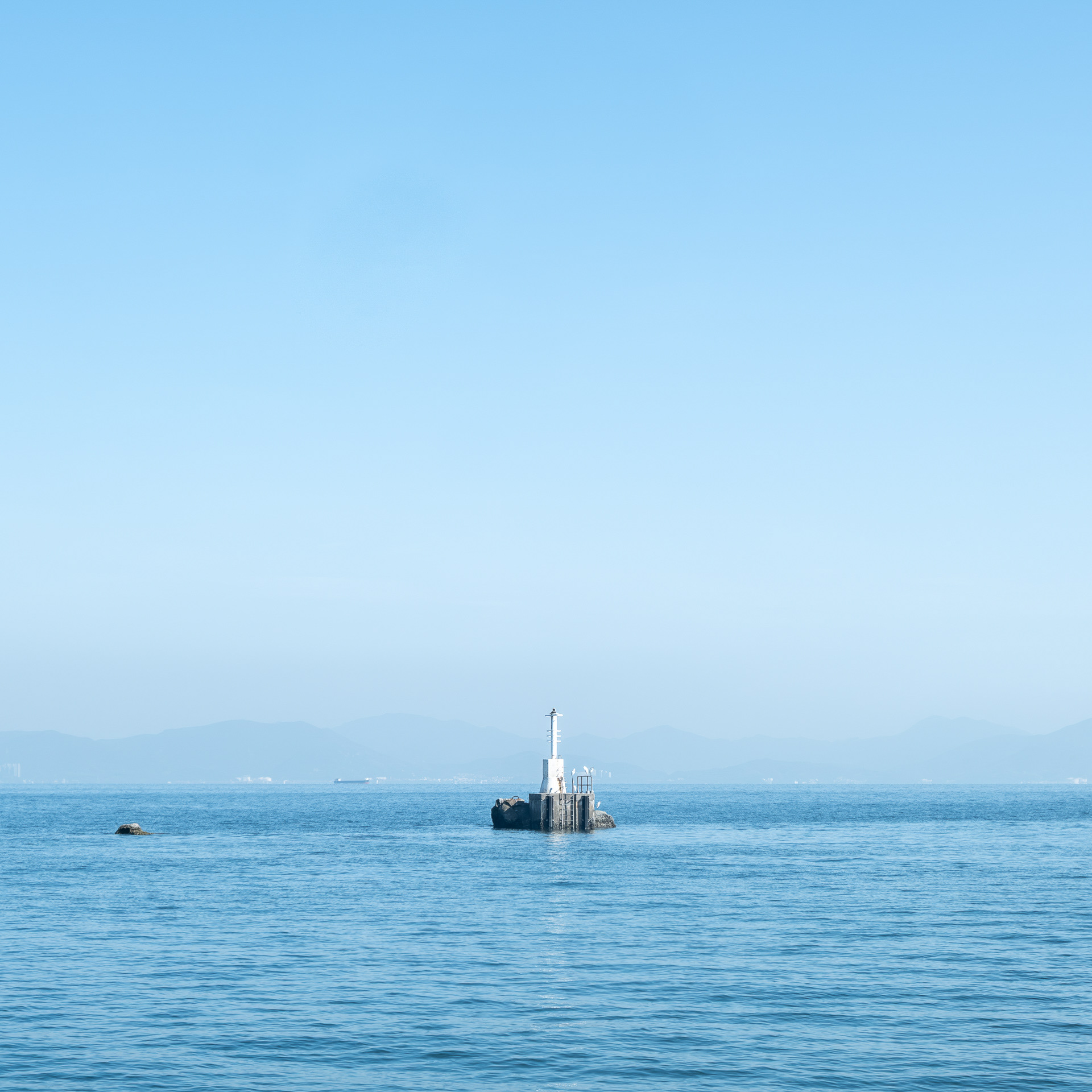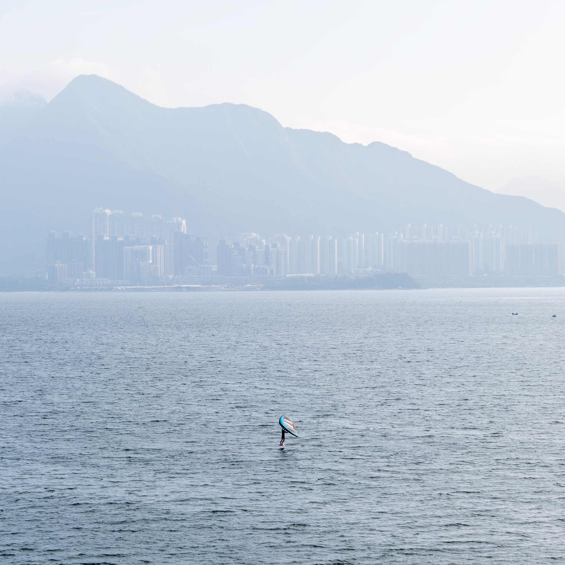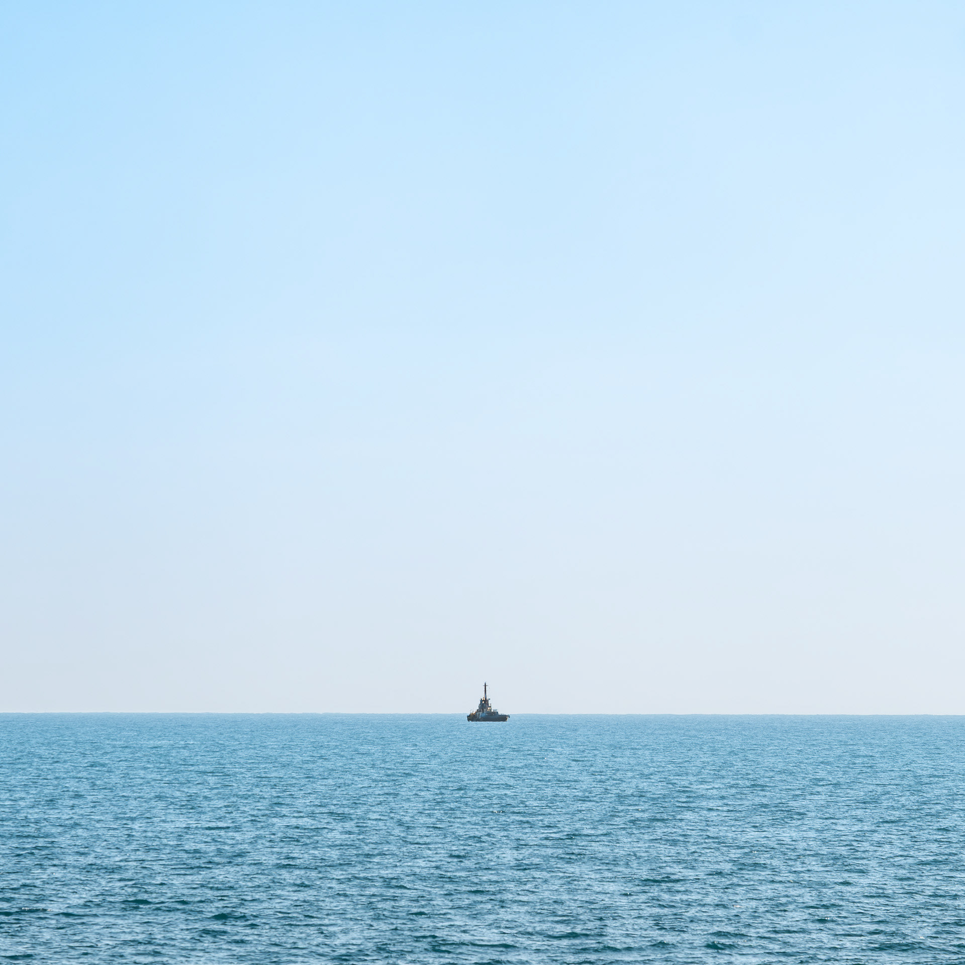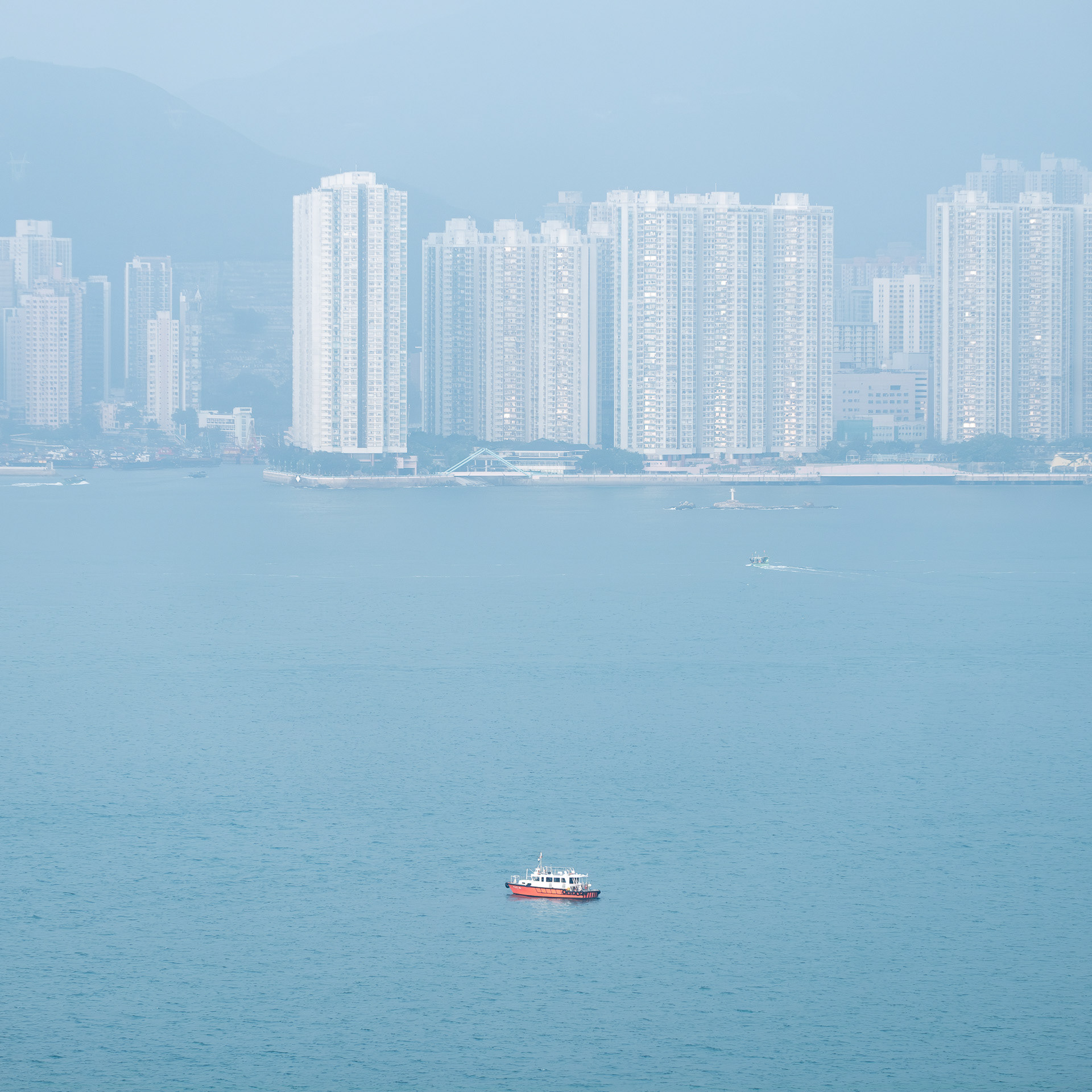 The photographs do not simply record Hong Kong's seascape; rather, they explore the act of observation through the lens. The sea level is a simplified plane. When the eye focuses on the object, it becomes an anchor point within the plane. When the anchor point is fully focused, the sense of time begins to slow to a standstill.