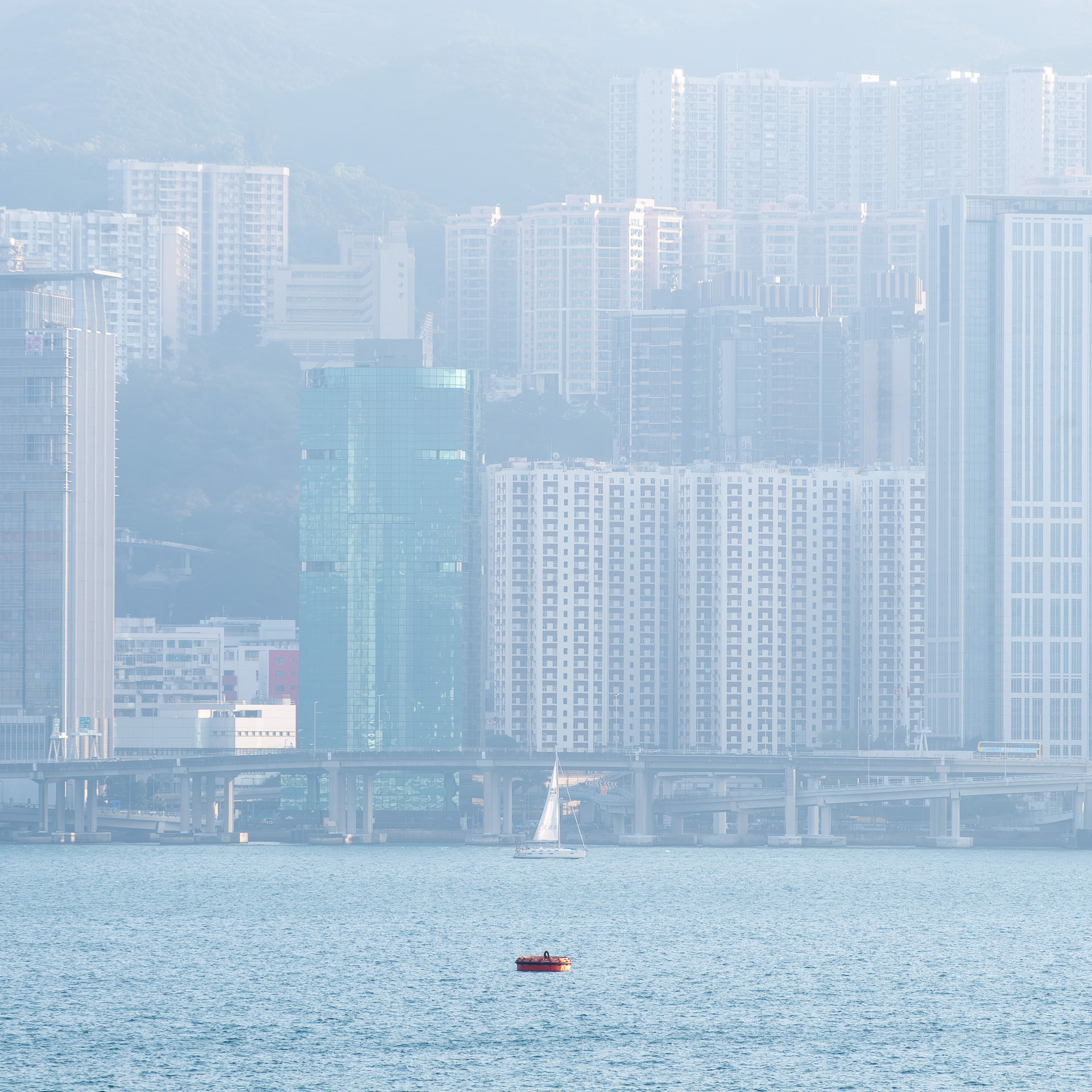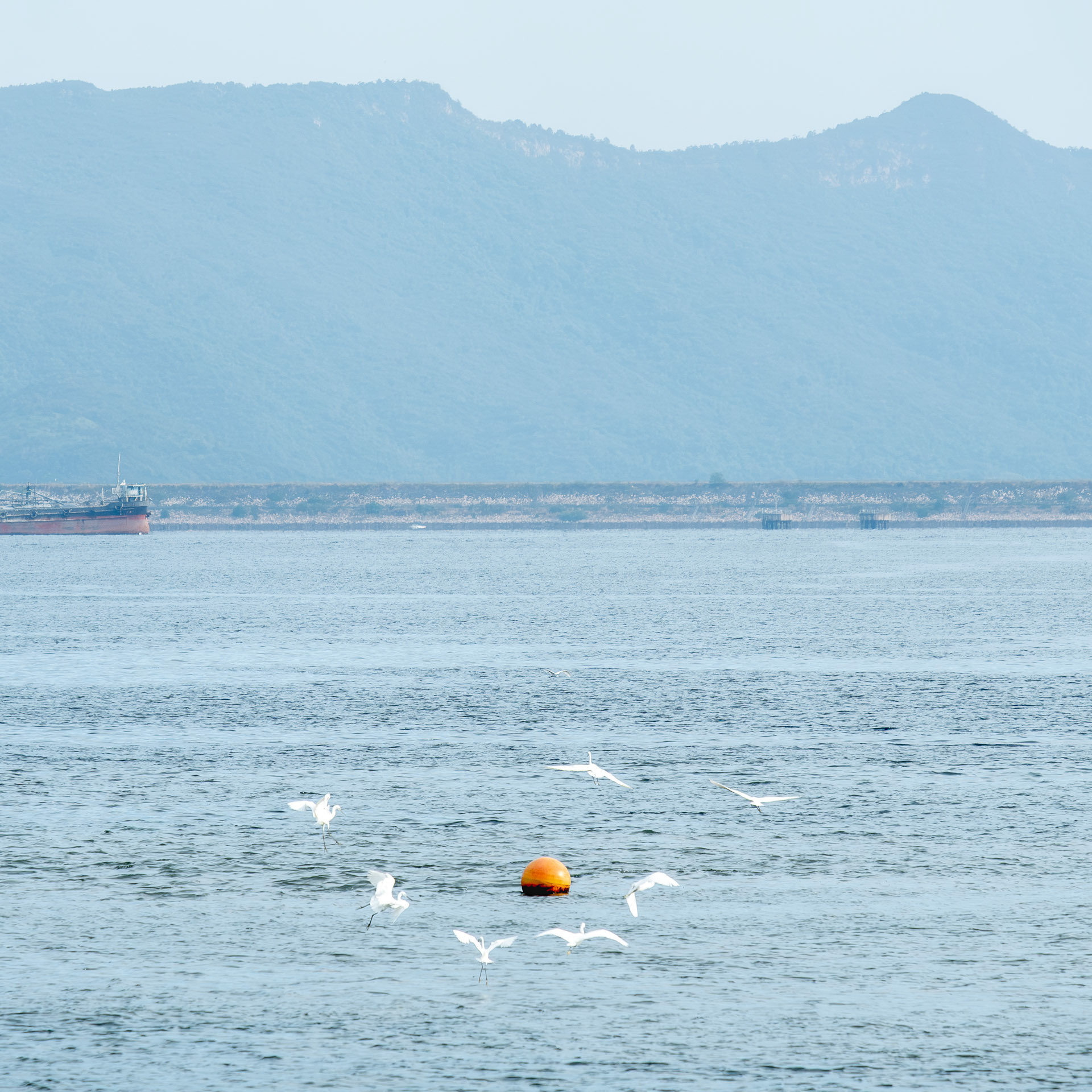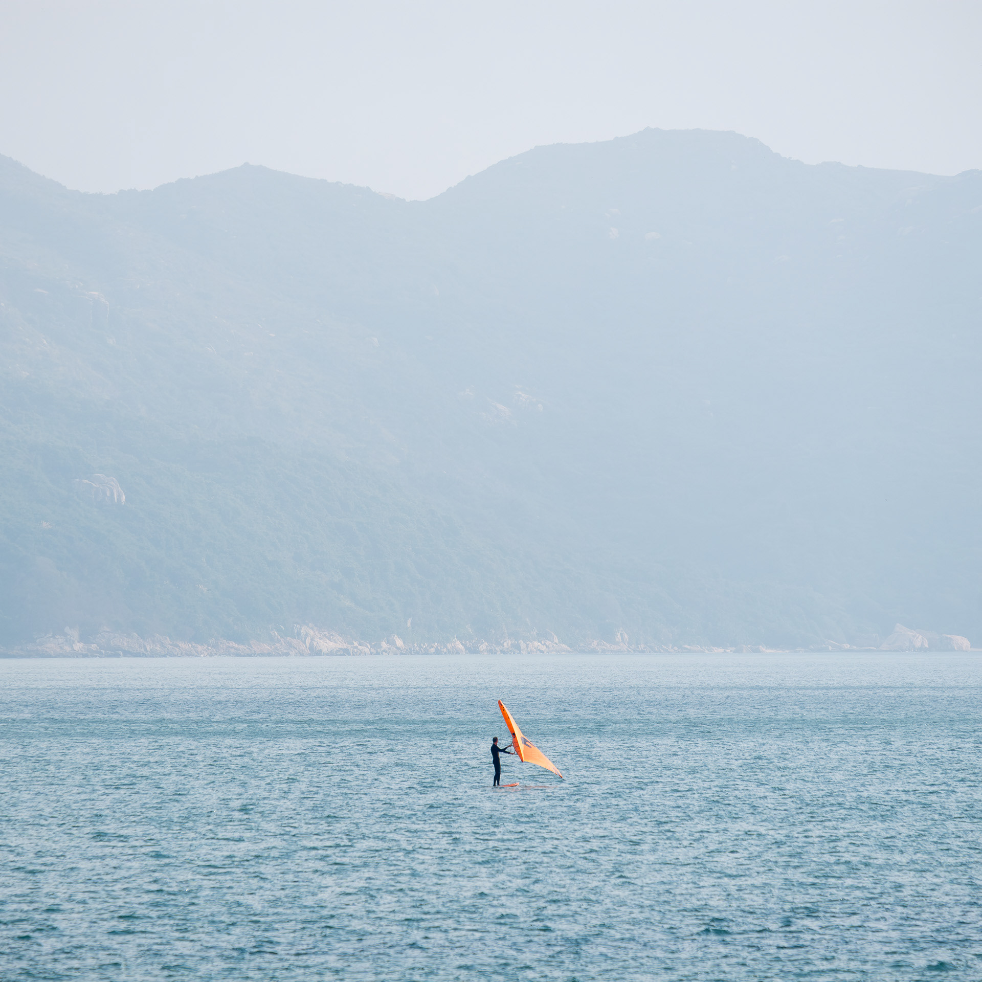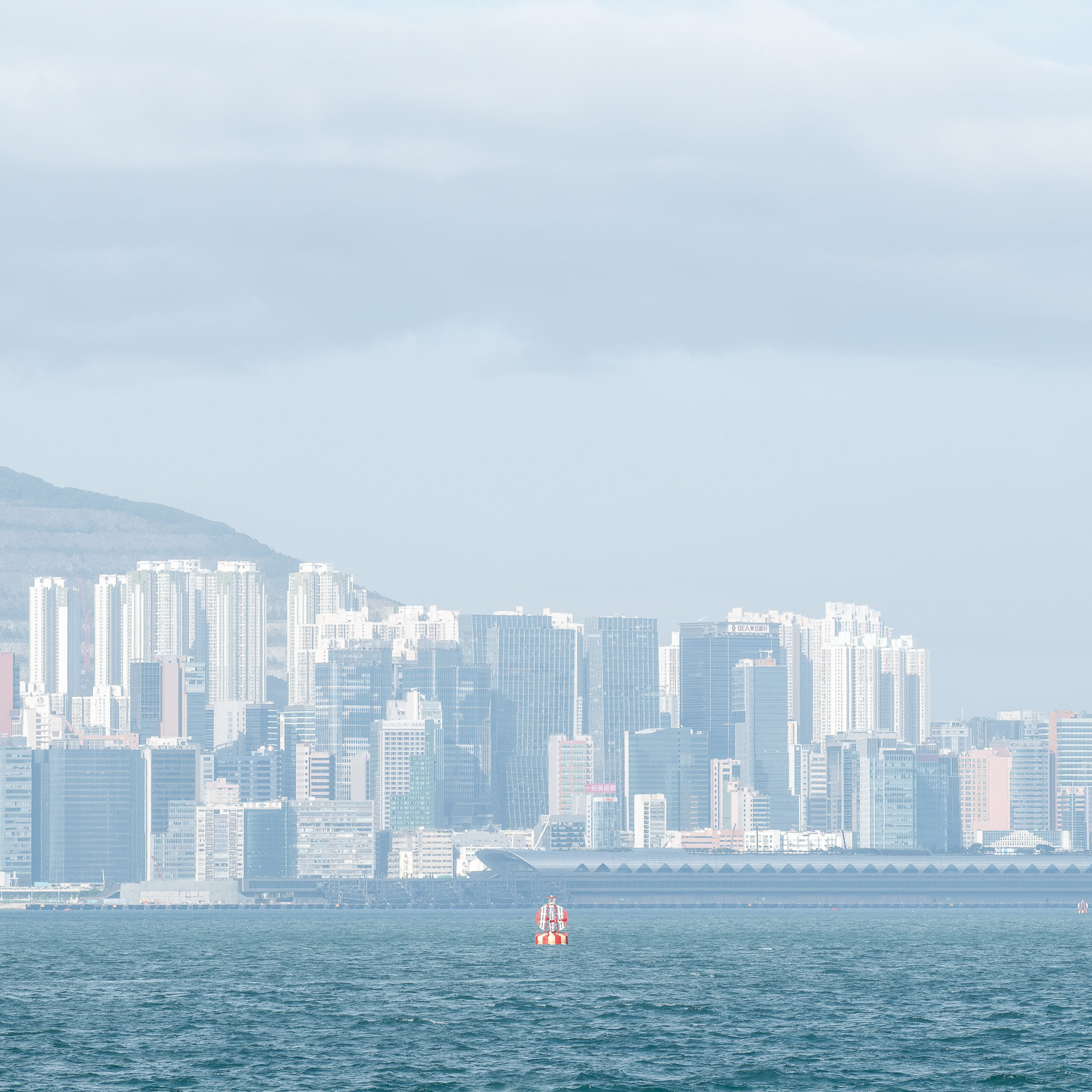The photographs do not simply record Hong Kong's seascape; rather, they explore the act of observation through the lens. The sea level is a simplified plane. When the eye focuses on the object, it becomes an anchor point within the plane. When the anchor point is fully focused, the sense of time begins to slow to a standstill.