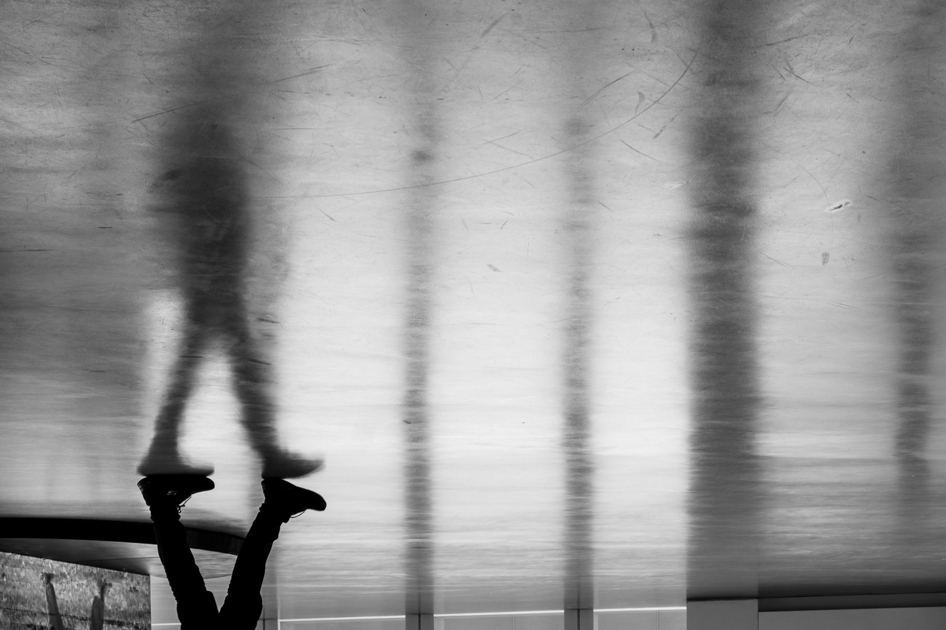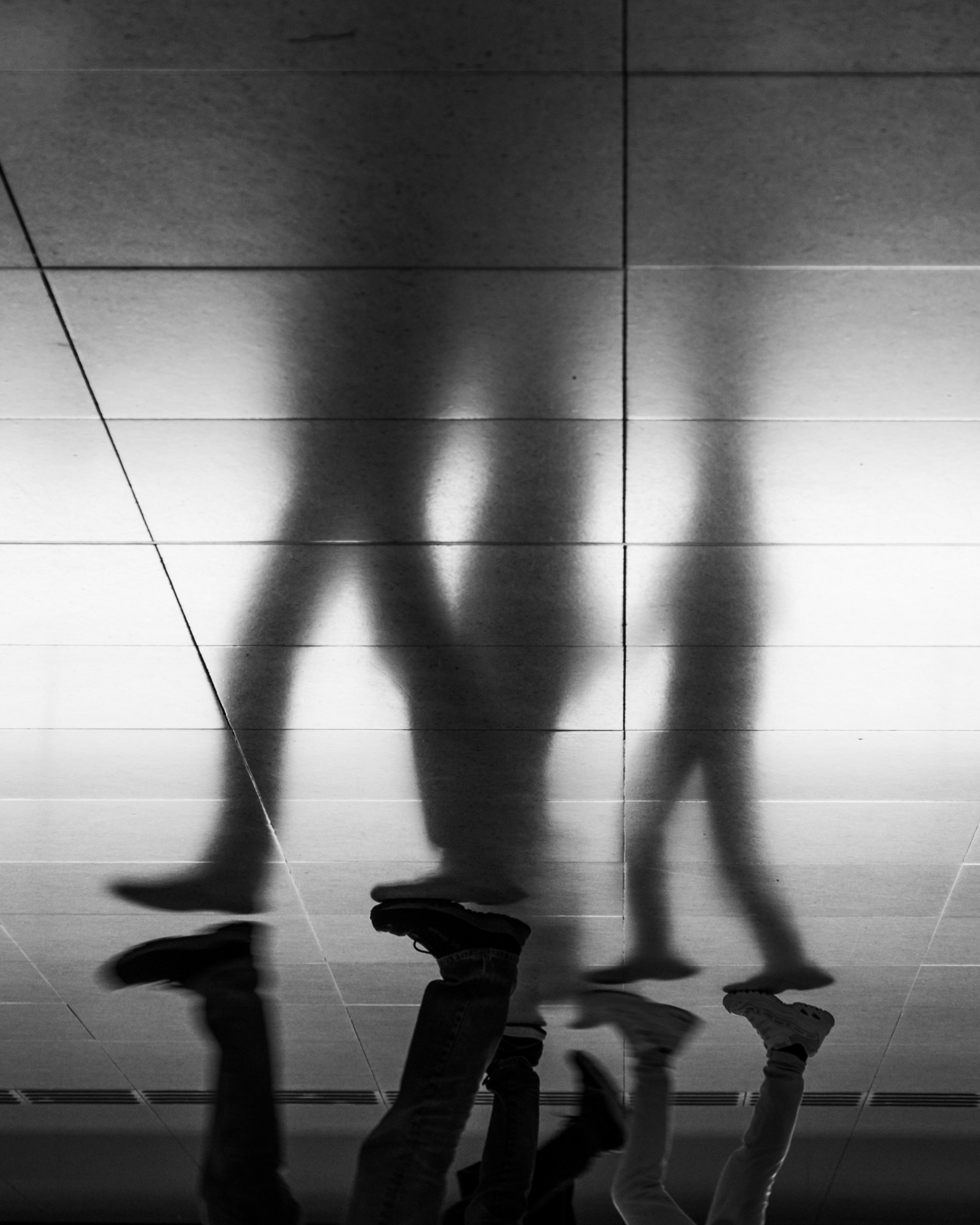 影子本身並無自性,完全依賴於光源與實體來存在,隨著因緣變化而生滅不定。作品中的人物就如同在地面上的反射,其朦朧不清的輪廓,如同「夢」境回憶,看似存在,實體卻無法觸及。人影在地面短暫出現,隨時可能因光線或移動而消失。